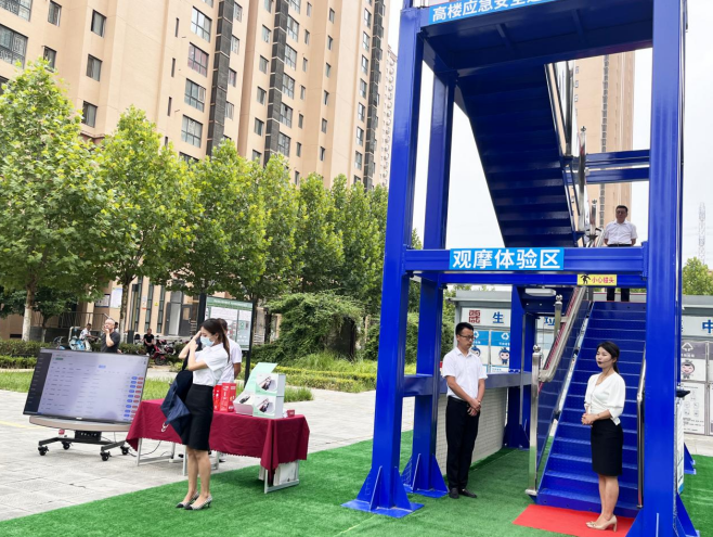 在灃西新城天福和園小區觀摩現場,與會人員聽取了“高樓應急安全逃生智聯系統”相關介紹,觀摩了老人、小孩等不同群體的下滑逃生演示,并現場體驗了逃生裝置的使用。紛紛對“高樓應急安全逃生智聯系統”的安全、快速、有序下滑給予贊許。