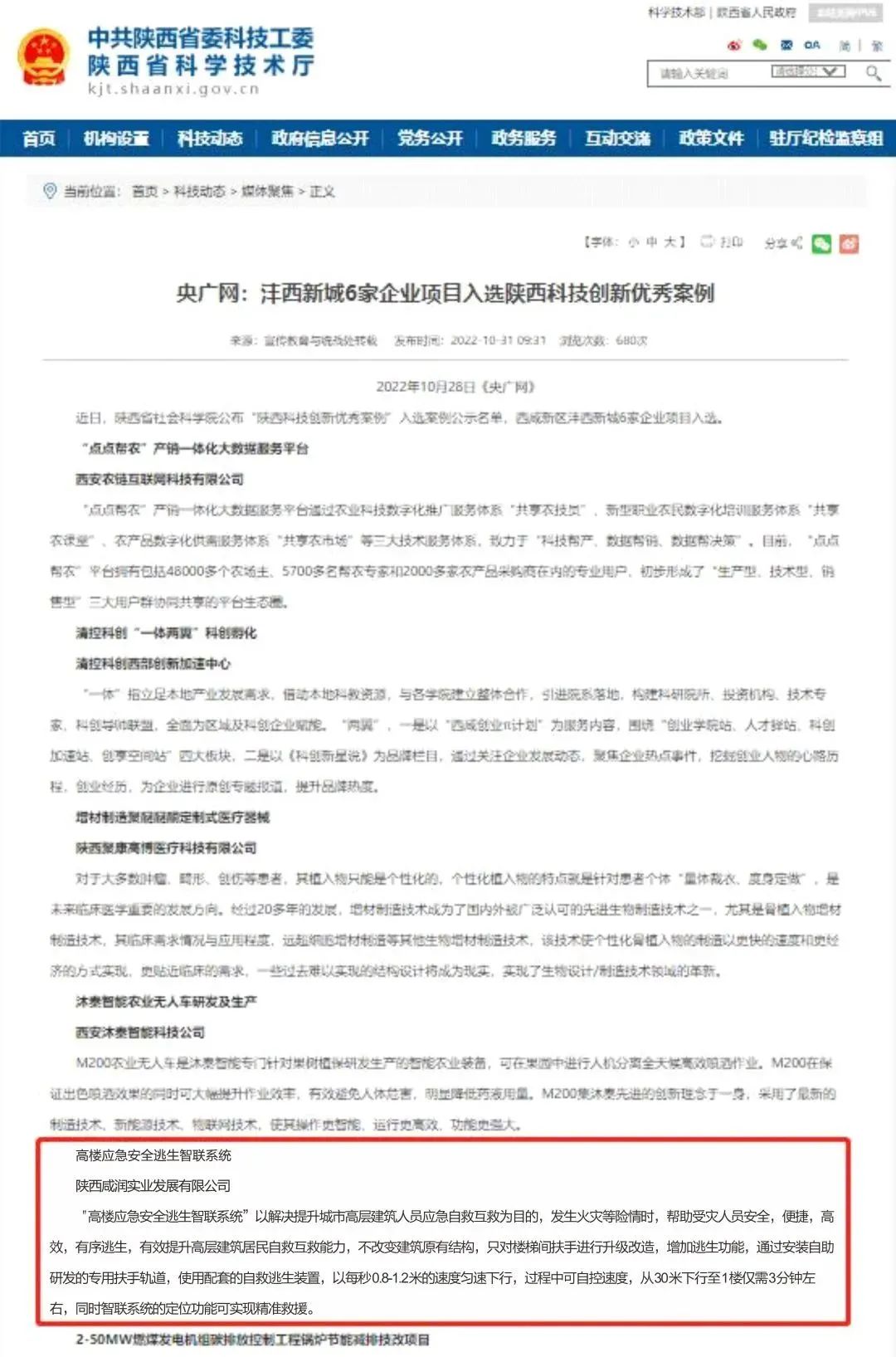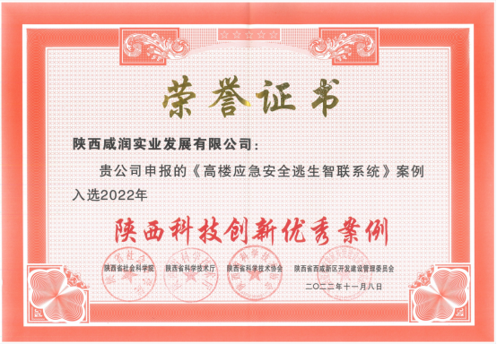 我司自主研發的專利型科技項目“高樓應急安全逃生智聯系統”作為“創新賦能高效治理高品質生活”板塊成功入選2022年陜西科技創新優秀案例。據了解,灃西新城共有6家企業項目入選。