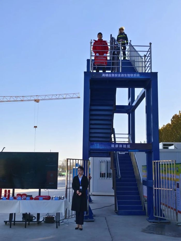 本次觀摩會由現場觀摩和會議座談兩部分組成,觀摩會設置在市級重點項目水城之心應急安全科創谷,現場 1:1 還原了“高樓應急安全逃生智聯系統”的鋼結構展示架,便于與會嘉賓沉浸式體驗和觀摩,同時,該系統也是水城之心應急安全科創谷項目開發建設的四大亮點之一,可有效解決城市高層建筑遇災人員自救逃生難題,補齊城市高層建筑應急疏散基礎設施建設短板,技術先進、性能可靠、操作簡便,極大程度增加逃生幾率。通過現場觀摩和研討,與會嘉賓紛紛對該系統的高效、有序、快速下滑給予高度贊許,并表示項目的未來發展潛力及社會價值遠遠超出了他們的預期。