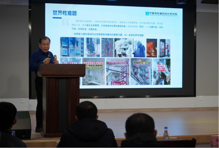 座談會上,中國建筑西北設計研究院原黨委書記、董事長熊中元在發言中強調:未來城市將是可行性與創新性的交匯。未雨綢繆推進韌性城市建設,推動從傳統的災害管理向以容災、耐災為核心的風險管理轉變,將有助于提升城市的安全性、增強抗風險能力,從而更好保障人民群眾生命健康和財產安全。自救能力建設是城市應急管理亟待解決的重要問題,要把自救能力建設作為韌性城市建設的重要抓手,讓群眾臨危時面臨“四無”—— 無路可逃、無處可逃、無序亂逃、無意自逃變為“四有”——有自救意識、有自救措施、有自救路徑、有自救設施,有效防范和應對城市災害事故發生。并與現場嘉賓進行互動交流,進一步加深了與會人員對高樓應急安全逃生智聯系統的了解和認識。