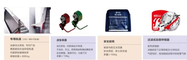 該系統分為逃生設施和智聯系統兩部分,通過人防+物防+技防的手段,形成立體化安全防控體系,解決城市高層建筑應急自救逃生面臨的重大難題。